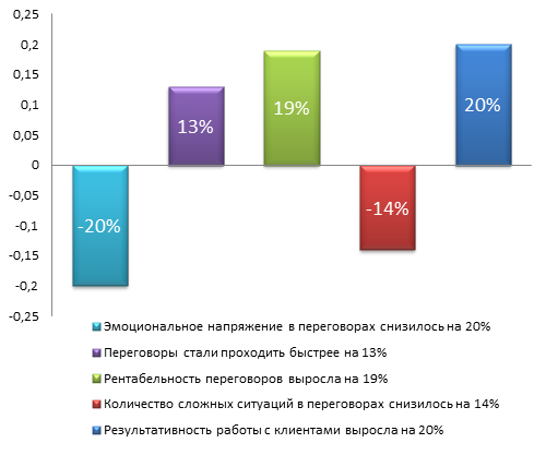 Результат: умение вести переговоры на более высоком социальном уровне (+1,+2)